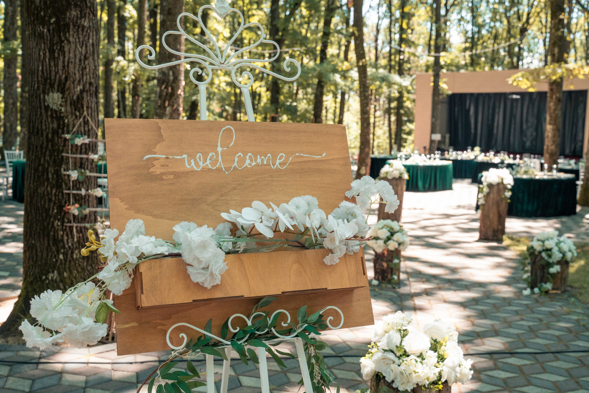 Eleganță sub cerul liber. Un culoar de basm, unde candelabrele de cristal și natura se întâlnesc pentru a crea cadrul perfect pentru 'Da'.