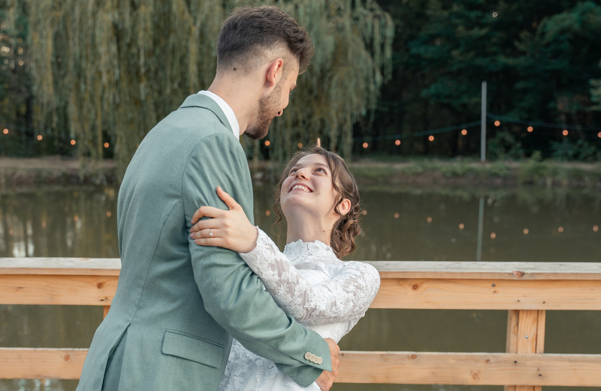 Privirea plină de admirație care confirmă că visul a devenit realitate. Un moment de dans și conexiune pe malul lacului.