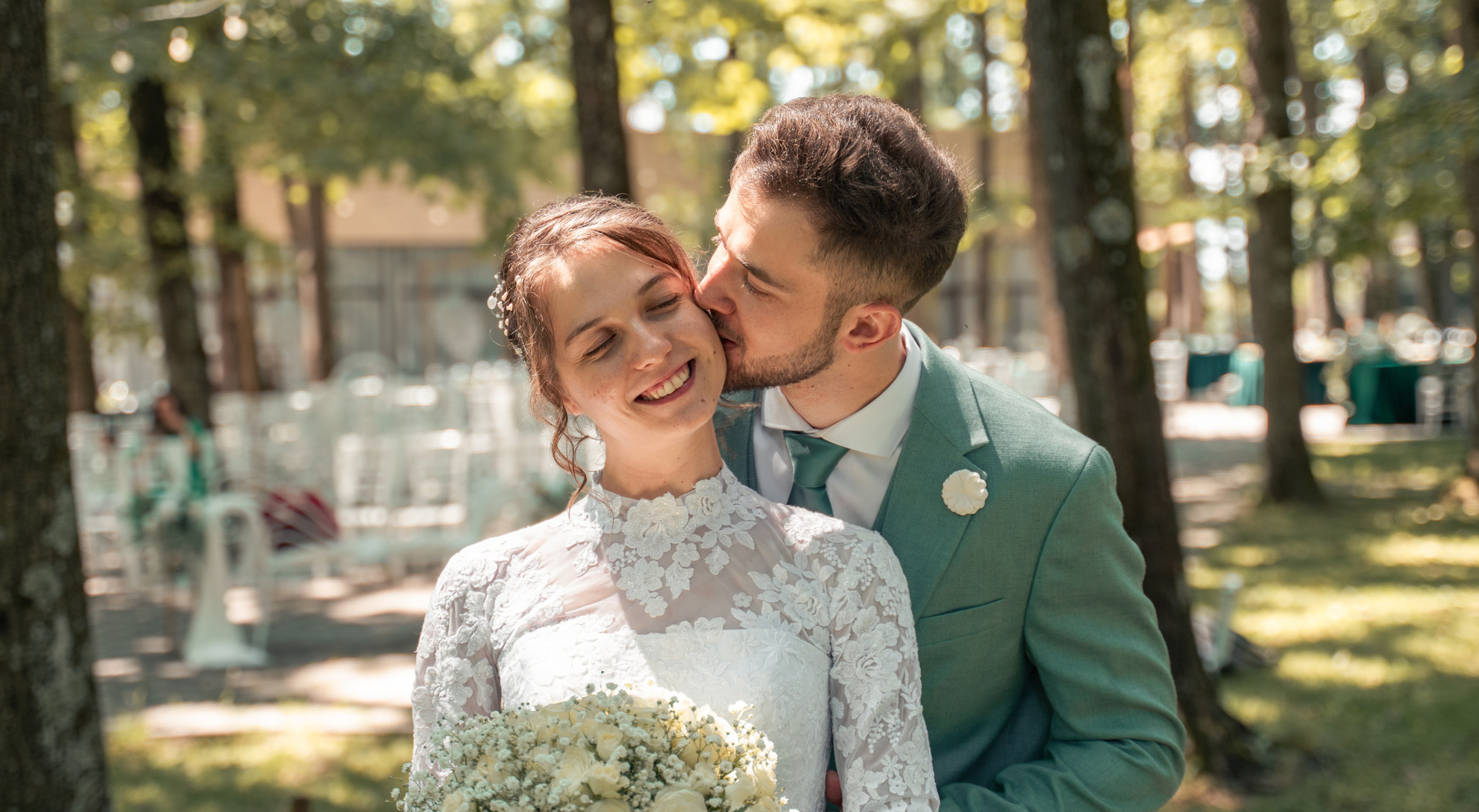 O îmbrățișare caldă și un sărut furat, în inima pădurii. Frumusețea stă în acele momente de liniște în care lumea din jur pare să dispară.